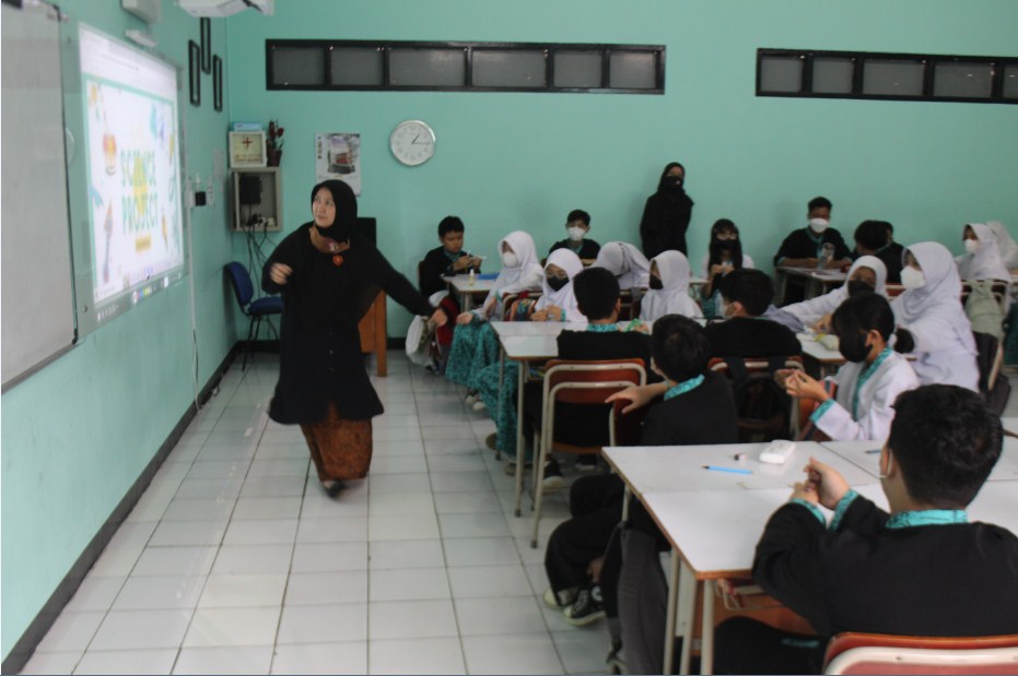 pembelajaran dibuka oleh Bu Maya sebagai guru Matematika dengan bahasa pengantar Bahasa Inggris, kemudian muatan pelajaran IPA disampaikan oleh Bu Wiwin Sriwulan. Dalam kesempatan ini juga hadir guru tamu dalam rangka studi banding dari Mts Sekolah Cinta llmu.